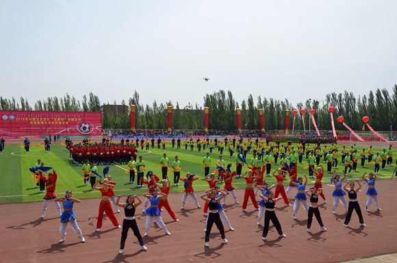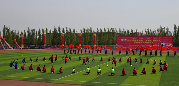 本网讯(文/图 体育学院学生会 姚辉)今天上午,2016年内蒙古自治区“主席杯”校园足球四级联赛大学本科组比赛开幕式在我校盛乐校区举行,我院330名学生经过为期12天的刻苦排练,为在场的领导、老师以及同学们带来了一场视觉盛宴。