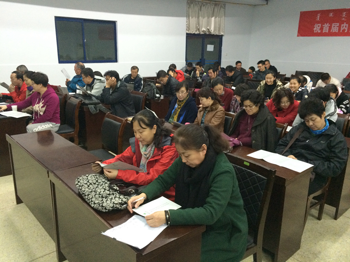本网讯(文/图 修增楠)11月16日下午,我院在体育馆报告厅召开迎接本科教学工作审核评估动员会,学院党政领导铁木尔、董建平、韩武、高娃及全体教职工参加了会议。