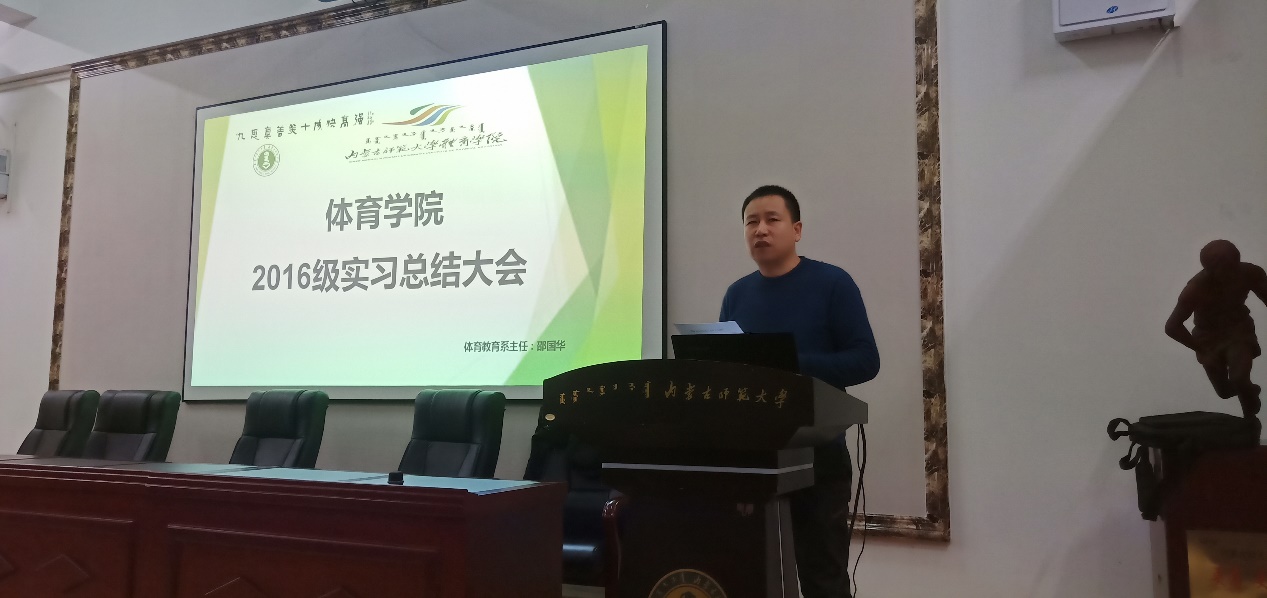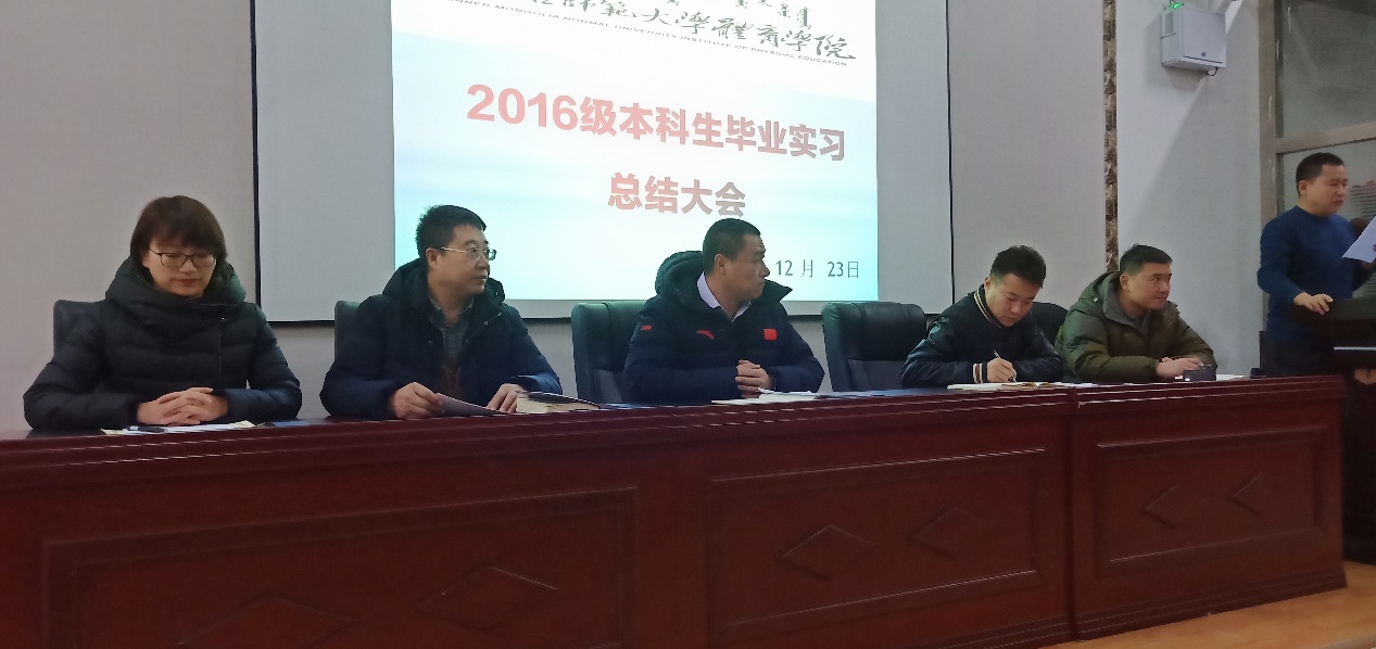 2019年12月23日星期一上午九点,在乐玩游戏网(中国)安卓通用版,体育馆二楼多媒体召开了2020届本科生毕业实习总结大会,出席本次会议的领导有体育学院党总支书记韩武、体育学院党总支副书记敖永胜、体育学院副院长李凤新教授、体育教育系主任邵国华副教授、运动训练系主任贾佳副教授、社会体育指导与管理系主任张晓英副教授,同时三个专业的实习指导教师也亲临会议现场。