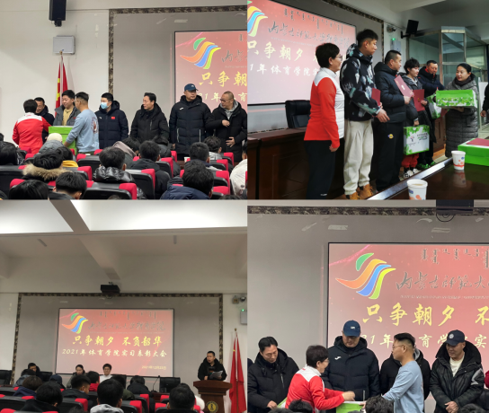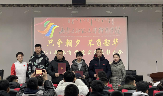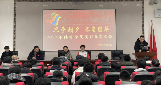 2021年12月23日,体育学院举行2018级本科生毕业实习表彰大会。内蒙古师范大学教务处毕力根格日勒老师、体育学院院长高娃教授和各系部主任参会。